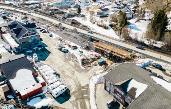 Nerbotn bru skal snart støpes, og det bygges støyvoll på andre siden av vegen.