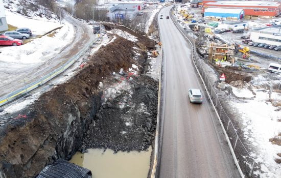 Sprenging av grøft mellom rv. 83 og Mercurveien fører til en kort stans, i dag 28.2.2023